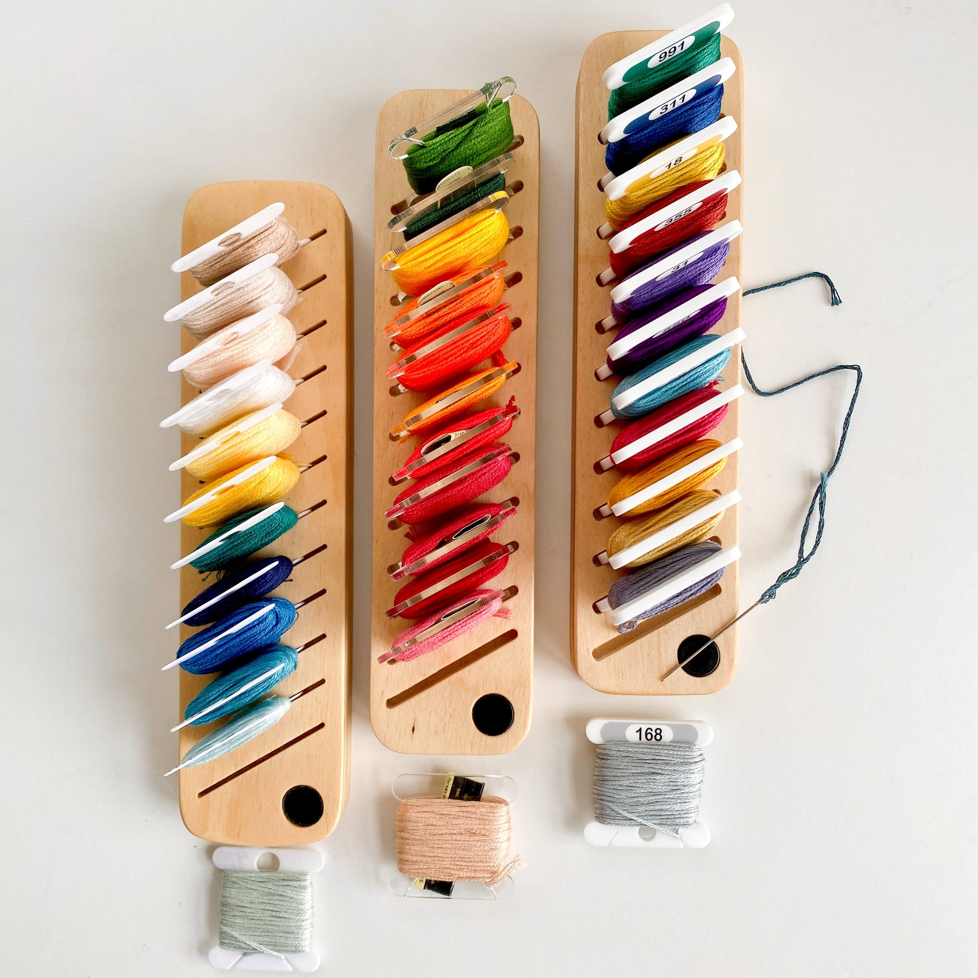 This Bobbin Floss Rack holds twelve of your WIP bobbins and gives you a spot to drop your needle. Very HANDY!
