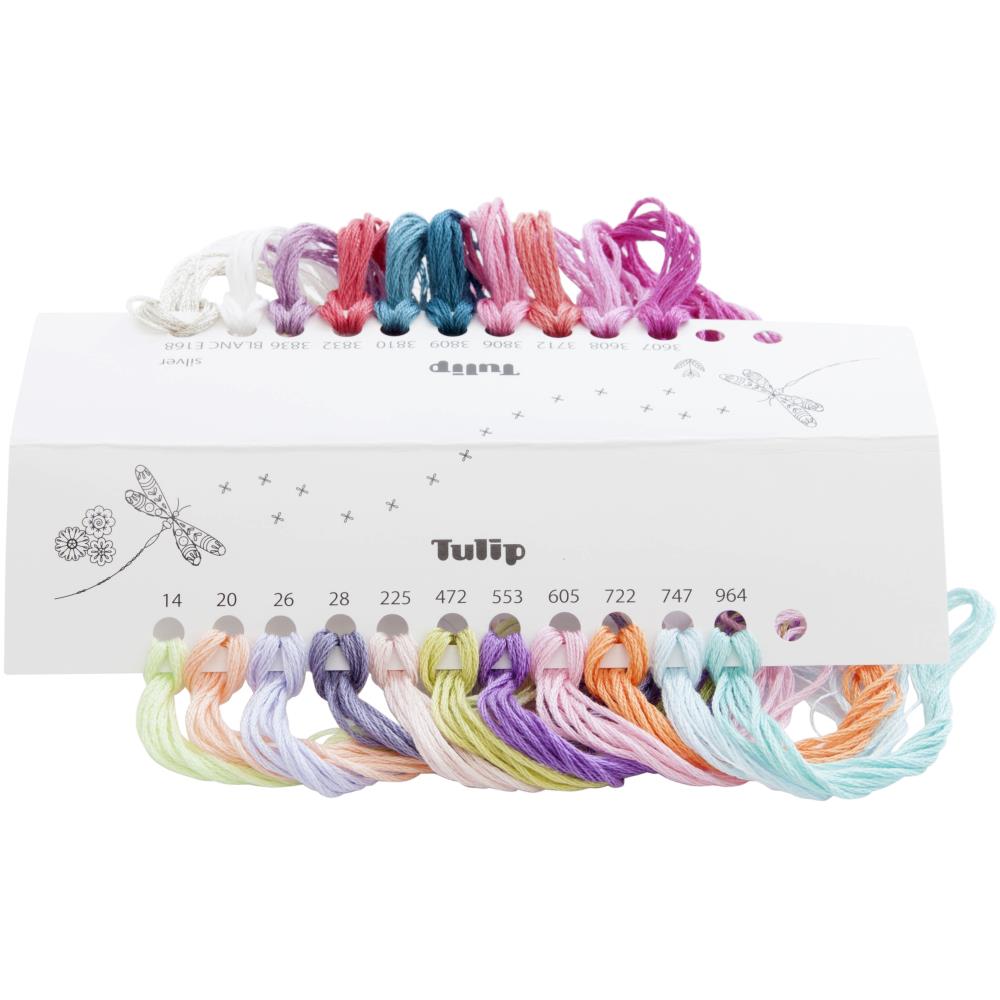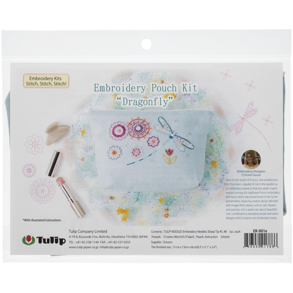 The embroidery design is adorable, even when just a small part is finished. With illustrated instructions for beginners. Designed by Christel Gouze (French embroidery designer). Kit includes 21 colors of French-made embroidery thread (90cm each), a semi-finished pouch, Tulip embroidery needles (sharp tip #5 and #8), and instructions.