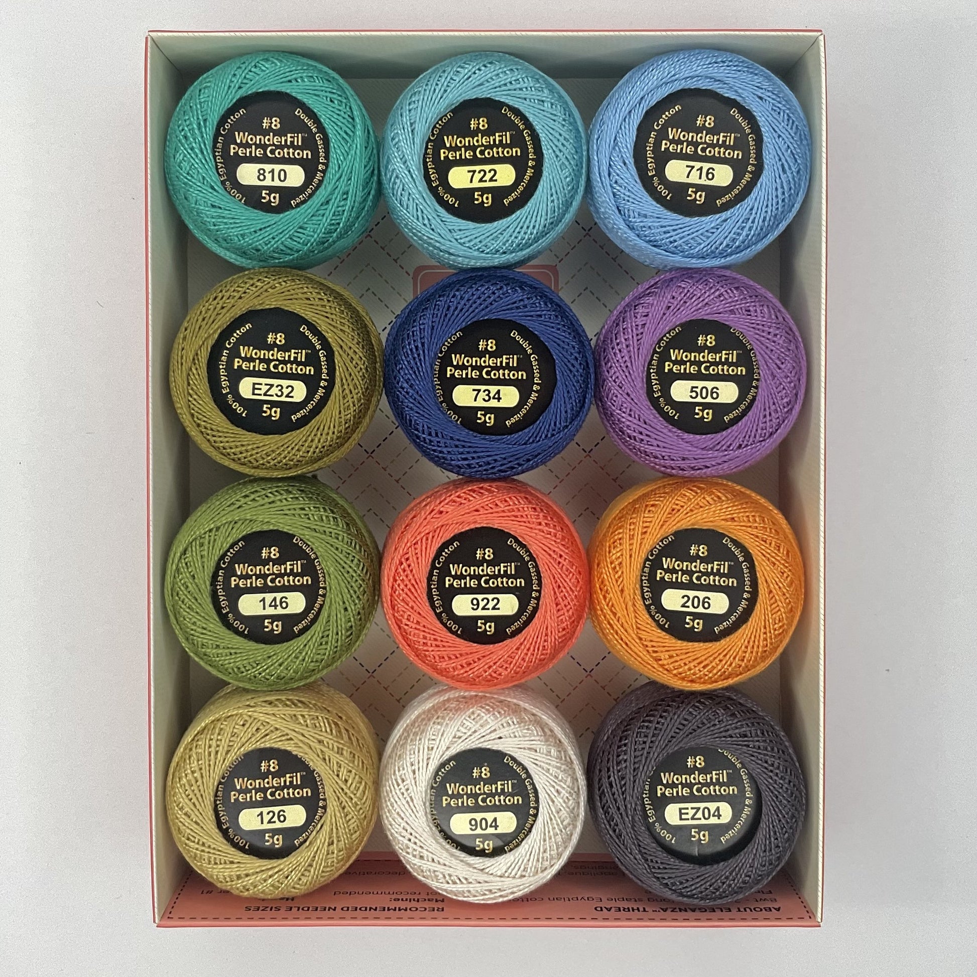 Each Wonderfil perle collection includes a single 5-gram ball of the following colors: